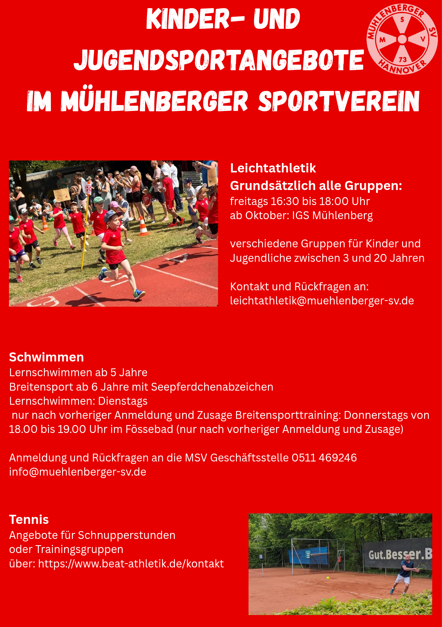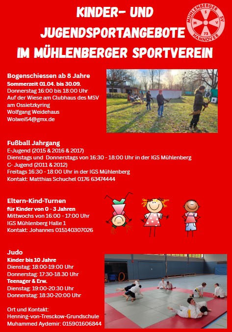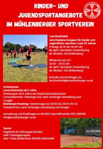 Du hast Lust eine neue Sportart auszuprobieren? Dann schau dir den Flyer mit den akutellen Sportangeboten für Kinder und Jugendliche an.
